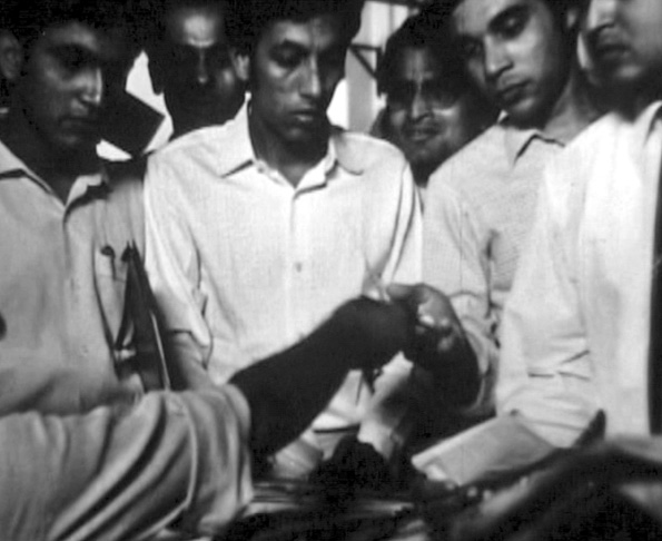 The Adversary begins with a negative sequence showing a funeral. Then we meet Siddhartha, a young man of 25 who is seeking work in an endless round of interviews. His father’s death led to the abandonment of his medical training after two years. Siddhartha’s younger brother Tunu is still a student but has now become a supporter of the Naxalites (the Marxist revolutionaries in West Bengal who are beginning to disrupt everyday life in Calcutta). The only breadwinner in the family is Sutapa, Siddhartha’s sister. She is a successful secretary angling to become the PA of the boss. Siddhartha ‘fails’ an interview because, in an often-quoted scene, he gives the ‘wrong’ answer to a question about the most significant event of the last few years when he suggests the courage of the ordinary people in the Vietnam War rather than the moon-landing. He then finds himself moping about the streets of Calcutta and sponging off his friends who are happier sampling the fleshpots of the city. The only opening appears to be via an old contact from his time in student politics.