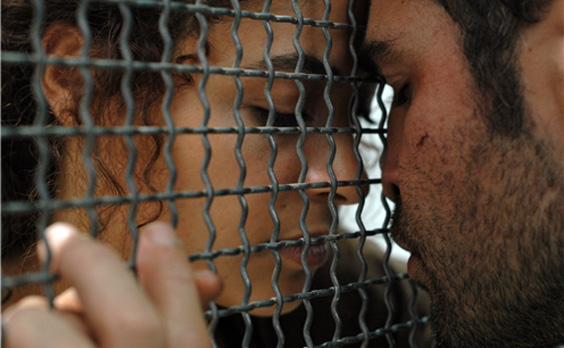 Cinematically Pomegranates and Myrrh is more interesting than the earlier film. There are occasional long shots, usually for establishing a scene or as transitions between scenes. Much of the movie is shot in mid-shot and close-up. This relentlessly emphasises the enchainment of the Palestinians: also present in the mise en scène in the frequent use of bars and enclosures. The films’ opening follows the wedding party on their way to an Orthodox Church for the ceremony. Their journey perforce is through an Israeli checkpoint and alongside the ‘apartheid wall’. This style also reinforces the sense of the restrictions that are laid on the heroine.
