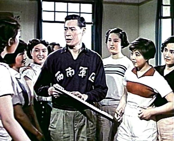 This plot outline suggests that the film will be a mix of the sports film with traditional Chinese film melodrama. But in fact it is more than that since any film made in China in the 1950s also had to have a directly political/ideological function – to promote the PRC, national pride in Chinese identity and the benefits of the communist system. Chinese films in the 1950s, produced by the state-run studios, were expected to follow the approved aesthetic of ‘socialist realism’ – that strange version of Hollywood realism developed in the Soviet Union under Stalinism to emphasise the heroic nature of workers and collectivism in a socialist society being built with revolutionary zeal. Most films would include a strong element of didacticism, often related to current Chinese Communist Party policies. Xie Jin includes one such speech (which is actually delivered twice) in which Tian tells a story about being humiliated as an athlete from the ‘sick man’ state of East Asia when he visited the West and how it is the duty of the young women on the basketball team to become strong athletes and to work together as a team in order to project their pride in the nation through victory on the basketball court.