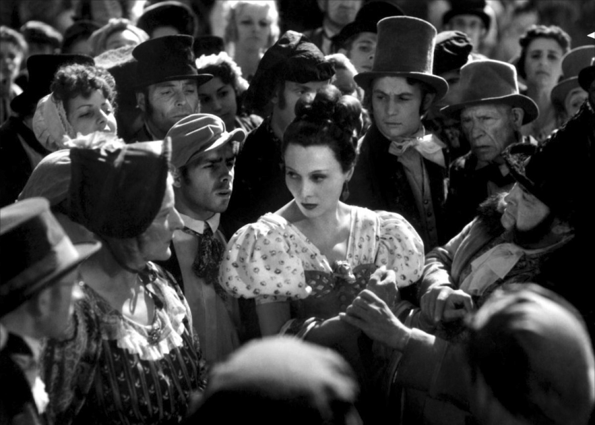 Like all the other French producers Carné and Prévert were forced to consider historical subjects for their next production in 1941. Les visiteurs du soir turned out to be a medieval tale of the battle between Good and Evil. This was deemed distant enough from contemporary reality for the Nazi censors. Contemporary stories had to ignore any references to wartime conditions and so the only way that filmmakers could comment on the Occupation was via allegory or metaphor. It was in this context that Carné and Prévert conceived Les enfants du paradis. Work began in 1943 on two out of a possible three linked stories based on real characters and events in the Paris theatreland of the Bourbon Restoration (1814-30). The production was based at the Victorine Studio in Nice where a giant Paris set of what was known as the ‘Boulevard of Crime’ was to be erected. Nice was chosen so that long-time collaborators like the Jewish art designer Alexandre Trauner and composer Joseph Kosma could be close by (though still in hiding). It was also good to be away from Paris which was only to be used for some interiors and post-production. The production proved very difficult once the Allied invasion of Italy altered security considerations in Nice and the production was halted for a period. Carné then appears to have delayed completion until virtually all of France was liberated. At this point he was able to convince distributors and exhibitors to agree to show both stories in the same programme with an interval and the premiere was in March 1945.