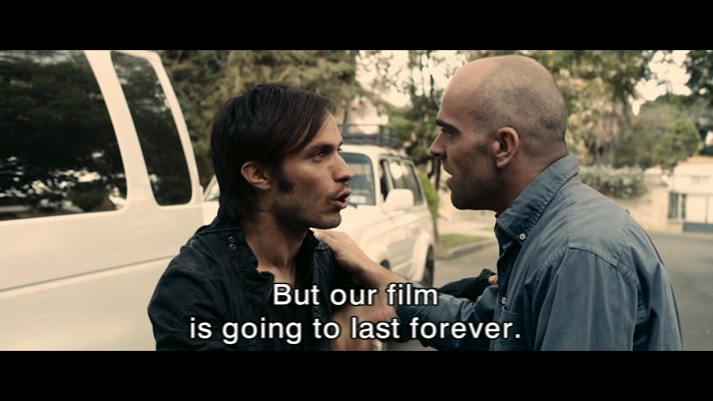 Costa’s personal transformation, under the influence of his friendship with Belén, could be seen as unconvincing and there only to set up an exciting climax in the form of a traditional chase scene. However, this view underestimates the capacity of individuals to reassess their actions as their own values are challenged and begin to change. Moreover, in his discussion with Sebastian, It is strongly hinted that Costa was not always interested only in the bottom line, that he has retained the core of idealism which brought him originally into filmmaking.