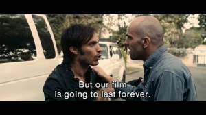 Costa’s cynicism contrasted to director Sebastián’s apparent idealism is a rerun of the perennial ‘art-versus-commerce’ theme (the film flirts with but ultimately avoids cliché) but in the end the roles are to some extent reversed as Otero turns out to have more idealism than the “film-is- everything” attitude of the director. Bernal’s role is much smaller than Tosar’s, suggesting he was there to tentpole the modestly-budgeted project out of political sympathy (he is an anti-globalisation campaigner and was a Zapatista sympathiser in his youth) http://www.timeout.com/film/news/1097/gael-garc-a-bernal-interview.html
