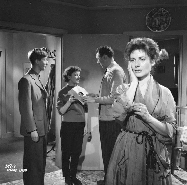 The milieu for the film is not ‘working-class’ as many of the reviewers of the re-release suggest. Nor is it a ‘middle-class’ block of flats as Gillet suggested in 1957. Instead, the couple at the centre of the story are lower middle-class – an important distinction in British society. You can see this in the clip released by StudioCanal on YouTube in which Amy, shocked by her husband’s demand for a divorce, rings him at work – where the ‘other woman’ (Sylvia Sims as Georgie) answers the phone. It’s an odd clip to choose as none of Taylor’s cinematic style is evident: