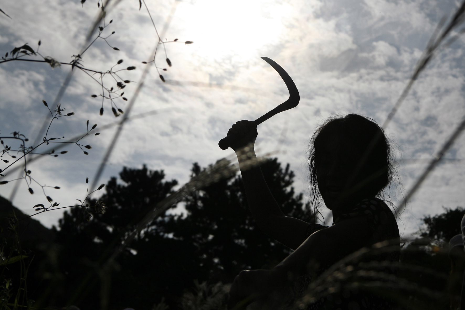 As the film gets, literally, more hysterical, as the abused woman unleashes her fury, the film offers a devastating critique of patriarchy; the older women on the island are all complicit. In one scene, a knife is fellated – see below.
