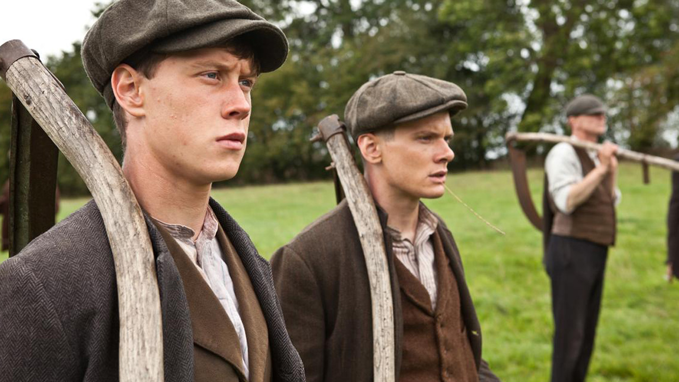 The two key protagonists are brothers, Tommo (George Mackay) and Charlie (Jack O’Connell, recruited again into the British army for the recent ’71). They are bought up in a rural setting in Devon, and when their father dies, by their strong minded mother Hazel (Maxine Peake). Later both enrol in the army and see service on the Western Front. It is here that the drama develops with a court-martial and subsequent execution. This is, of course, the territory of Paths of Glory (1957) and King and Country (1964).