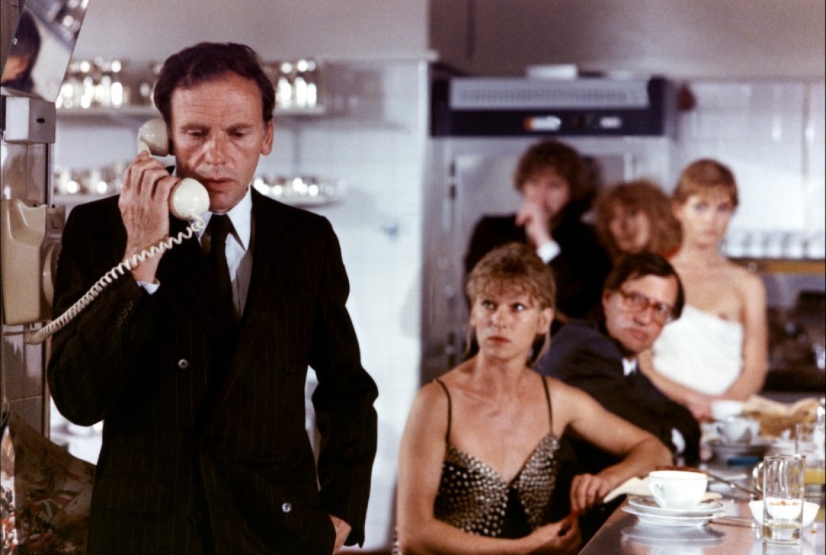 ‘La Huppert’ was in her late twenties when she made this film and with her elfin look she might be a very beautiful boy if she wasn’t dressed immaculately in a succession of outfits which, while remaining elegant throughout, she manages to slip out of – sometimes in public. Trintignant was the great lover of the 1960s with a sometimes dark and brooding presence. Here he plays a cuckold who appears at different times to be controlled and composed but at other times to be on the edge of exploding. He is also not averse to flirtation if the opportunity arises.