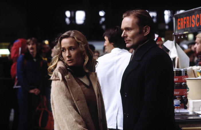 The film’s plot is familiar and very much what we might expect from Highsmith (it’s an adaptation of a 1964 Highsmith novel with the same title) – it even includes the train which brings Phillip Braun (Helmut Griem) back to Frankfurt after a five-year prison sentence for causing death and injury through shoddy work as an architect on a building project. Quickly explained in an expressionist flashback in the first few minutes of the film, this is quite difficult to grasp in terms of detail and I’m not sure that the subtitles explain enough about the legal questions. Phillip is still convinced that he was set up by Lasky (Walter Kohut) the crooked accountant/speculator on the building project. Somehow, a large sum of money is missing and the assumption is that Phillip has taken it and used cheap and unsafe substitute materials. During his nearly five years ‘inside’ Phillip has suffered mentally and also seems to have lost something of his status as husband and father with his wife Lisa (Brigitte Fossey) and his son Timmie, both of whom seeming to have fallen for the slick lawyer David Reinalt (Dieter Laser) – who was supposedly Phillip’s top legal counsel in his defence. Reinalt still maintains that Lasky is behind all Phillip’s problems. He tries to help Phillip find a job, but also seems to be overly supportive of Lisa and Timmie.