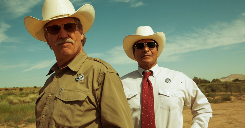 The action takes place in West Central Texas, though the film was shot entirely in New Mexico. In fact the fictional space is perhaps better described as ‘Comancheria‘ (the working title of the film), the area dominated in the mid 19th century by the Comanche people that runs across the modern state lines of Oklahoma, Texas and New Mexico – an important geographical factor in the film’s narrative. Two brothers set out on a carefully-designed campaign to rob small banks belonging to the same Texas banking company. They plan to steal only small bills and to launder the money quickly before using the new stash to pay off a large debt the family owes to the same bank. They have to get the money “by Hell or High Water” to meet a strict deadline within the next few days. One of the brothers (Tanner, played by Ben Foster) is a wild professional criminal, having already served time for bank robberies. The other brother (Toby, Chris Pine) is ‘clean’ and he is the one with the brains and the cunning plan. Jeff Bridges plays Marcus Hamilton, a Texas Ranger on the brink of retirement. He’s been waiting for an interesting ‘last case’ and he’s the only one who seems to understand what the brothers are up to. He has a sceptical partner, Alberto Parker (Gil Birmingham) – a Comanche/Mexican man who must put up with Marcus and his good-natured racist banter. So, two pairs of seemingly mismatched men in a contest. It’s a neat genre proposal.