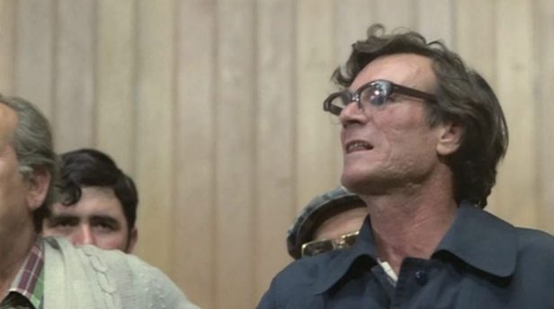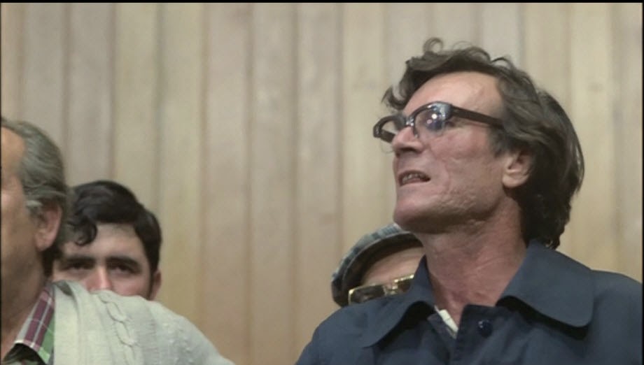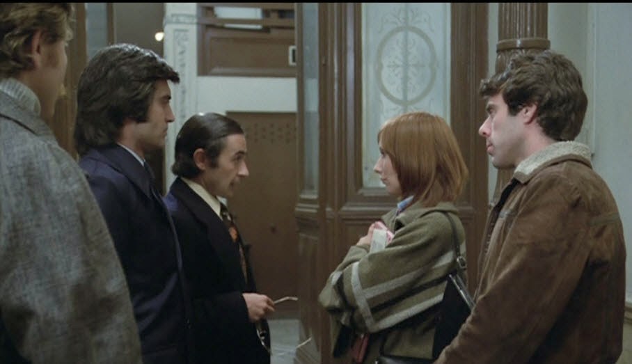 The other more practical reason for a filmmaker to focus on the right-wing upper class families is the sheer number of characters in the script and the necessity to include non-professional actors (Manuel Ángel Egea as Luis María does not seem to have any previous credits). I suspect that several of the trade unionists and lawyers are played by non-professionals. Their narrative is much more collectivist and only a handful of them are picked out for dialogue scenes. The most charismatic is the trade union leader Joaquín Navarro (I can’t discern if he is played by a professional actor) and from the lawyers, the young woman (see the image above) who was one of the survivors and who is required to pick out the perpetrators from a line-up. The film is accurate in terms of broad details of the events and I won’t spoil the narrative too much, but simply record that the main thrust of the events is a plan to assassinate the Atocha lawyers. If you want to know the details they are available online. The blog from which I’ve taken screengrabs actually explains who many of the characters in the film are and how they refer to the historical figures involved in the real events (see the first image).