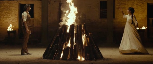 I’m not really in a position to comment on how much this change of emphasis actually changes readings of Lorca’s original text since I haven’t seen theatrical versions of the play nor the best known film adaptation – as a dance drama directed by Carlos Saura (Blood Wedding, 1981). I have read a synopsis of the play and various commentaries and the main difference would seem to be that The Bride dispenses with what might be called the ‘chorus’ figures and some lesser roles, replacing them to some extent with crowd scenes and visual effects. In addition, Ortiz begins her film with the final sequence of the narrative and then flashes back. She also includes a sequence about the three central characters as teenagers/young adults. Lorca’s text names the main characters by role – i.e. ‘The Groom’, ‘The Groom’s Mother’ etc. and Ortiz follows suit. (The adaptation was written by Paula Ortiz and Javier García Arredondo.)