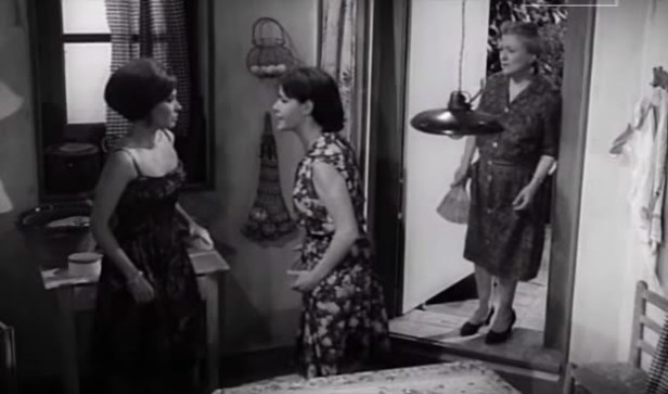 In El Mundo sigue, the absence of those supportive, collective structures for the working-class family is to some extent countered by the presence of the playwright turned theatre critic. Here is a family friend, a writer whose play has only been seen a few times in the neighbourhood and was then barred from opening in ‘town’. Now he writes theatre reviews and at one point is warned not to be too critical of the plays he reviews. He comes to visit the apartment a few times and tries to give advice to the daughters. He is trusted by the mother because he is from the community – whereas the men Luisita takes up with have made their money through conforming to the Francoist regime’s policies.