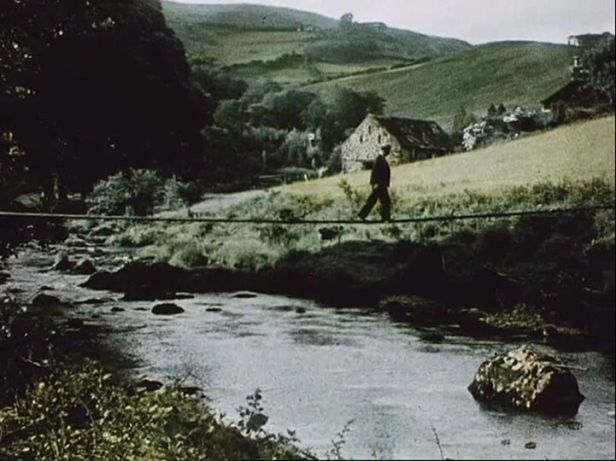 This was a fine example of the lustrous palette found in Technicolor. The commentary is read by Stephen Murray. The film is full of glorious shots of the Stroud Valley, old buildings and a graveyard, valley slopes, smooth rivers and nestling tress and flora. Later we enter an old linen factory where the rich colours of the cloth exploit the colour process. The film is edited into a gentle narrative. The opening shows a horse and rider wending their way down hill. There follow later some good example of forward and reverse tracking shots. The commentary proposes a ‘secret’ which is followed till we hear and see an explanation of the Stroud cloth industry. At the end the horse and rider wend their way back uphill; then a cut shows us a modern tractor, presumably as comment that Stroud is modernising.