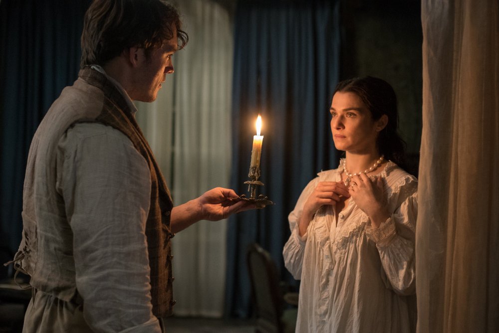 The story is set in the mid-19th century, perhaps the late 1830s (the year is not given in the film, that’s the time the book suggests). Philip Ashley (Sam Claflin) has grown up as an orphan and a ward of his cousin Ambrose. When Philip arrives back at the estate in Cornwall/Devon he learns that Ambrose has died in Tuscany where he had been spending time for his health and where he married another, distant, cousin. Philip will inherit the estate on his coming 25th birthday but before that event he is expecting Rachel (Rachel Weisz), his cousin’s widow to arrive from Italy. The estate is currently held in trust by the family lawyer (played by Simon Russell Beale) and Ambrose’s friend and godfather, Nick Kendall (Iain Glen). Nick’s daughter Lucy (Holliday Grainger) was Philip’s childhood friend and she clearly has an interest in him. What will happen when Philip meets Rachel? Will he confirm his suspicions that she is a dangerous woman who perhaps caused Ambrose’s demise – or will the naïve young man quickly lose himself in infatuation?