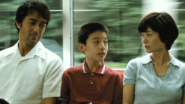 The family briefly back together – on a train (this is Japan!). Ryota (Abe Hiroshi), Shingo (Yoshizawa Taiyô) and Kyoko (Maki Yoko).