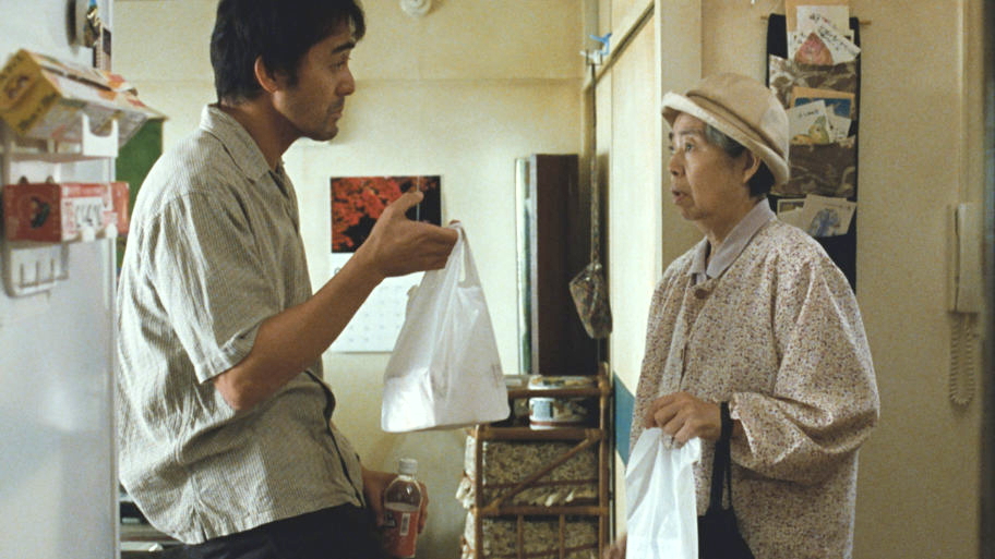 Ryota’s other problem is that his ‘failure’ to earn money has led to divorce by his wife Kyoko (Maki Yoko) and only monthly access to his son Shingo (Yoshizawa Taiyô). The scenes away from mum’s flat see Ryota working with a junior partner and then spying on Kyoko when she is with with Shingo and her new partner. Ryota then meets his son for their monthly outing before father and son visit his mother’s flat and Kyoko (still waiting for her child support payment from Ryota) is persuaded to join them. The final section of the film then presents the three generations together for the night as Typhoon #24 of the summer is unleashed.