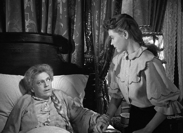 We can guess what will happen, but the film is highly engaging with its narrative twists and turns and the superlative camerawork, lighting and set design make it always watchable. Helen is both ‘damsel in distress’ and investigator (and arguably the ‘final girl’ as identified in the horror films of the 1990s). As well as Helen and Mrs Warren, the film also features two other significant female roles played by Rhonda Fleming (who went on to lead roles in the 1950s) and Elsa Lanchester (wife of Charles Laughton and dogged by her early Hollywood success in The Bride of Frankenstein). The narrative draws primarily on the suspense thriller repertoire. The visual style suggests the horror film as much as the film noir and it is supported by a strong soundtrack mix of effects referring to the terrible storm outside, the banging of windows and shutters and the sound of the wind and rain. Horror and film noir arguably have roots in common in German expressionism of the 1920s and the same roots also apply to the particular cycle of female-centred melodramas that became popular in the 1940s. Many of these reveal a certain kind of paranoia about being in the ‘old dark house’. In Gaslight (UK 1940 and US 1944), both films adapted from Patrick Hamilton’s play, a woman in London becomes fearful that her house is subject to strange events. Her relative was murdered in the house some time ago but is her present husband trying to frighten her? Ingrid Bergman is the frightened woman in the Hollywood version with clear film noir links. The Spiral Staircase also links to the Barbara Stanwyck ‘woman in distress’ film Sorry Wrong Number (1948) in which she plays a woman who is bed-ridden, like the Ethel Barrymore character in the Siodmak film and similarly fearful of an attack. These melodramas are also films noirs.