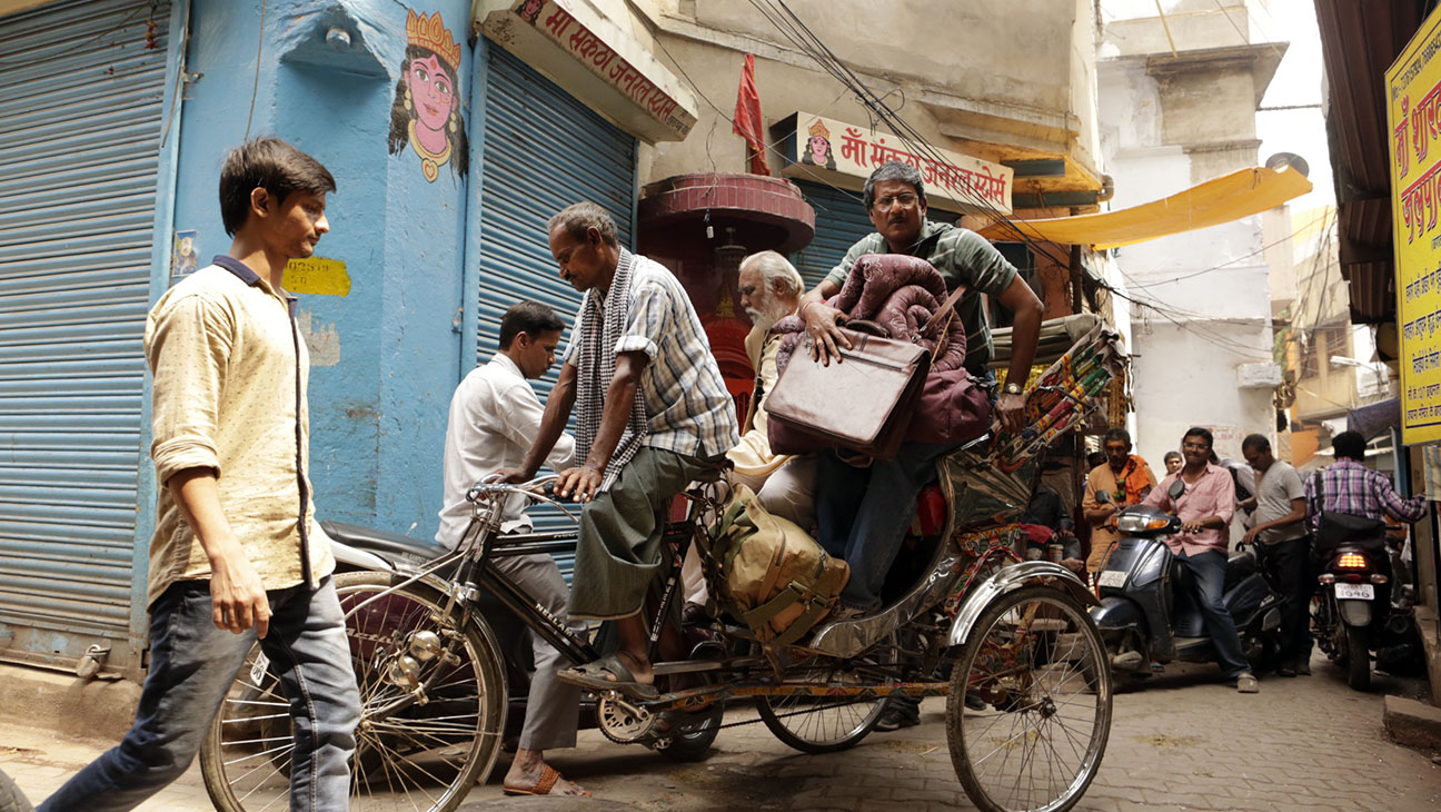 Shubhashish Bhutiani had the idea for the film when he discovered the existence of the Varanasi ‘Mukti Bhawans’ or ‘Salvation Hotels’ – modest hostels which allow a dying person to stay for a maximum 15 days. If they have not died in that time they must move out – but some just re-admit themselves under a different name. The hostel has a priest on hand and access to all the necessary services. Varanasi is still well-known for its ghats – the stepped embankments that lead down to the Ganges, some of which are regularly used for cremations and pujas (religious rituals). However, the numbers are now restricted because of fears of pollution. Daya avails himself of what is on offer and makes a number of friends in his first fortnight while Rajiv grows increasingly frustrated, linked via his mobile to a boss who keeps asking him when he is returning. Later both his wife and daughter will come to visit with their own concerns and Bhutiani has said: