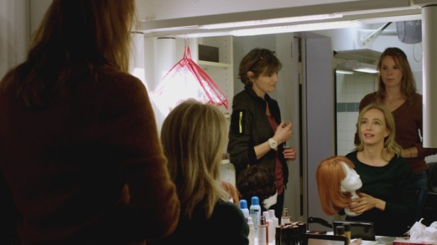 Casting is a German film by Nicolas Wackerbarth who also wrote the film with Hannes Held. The whole film is improvised and Wackerbath told us in the Q&A at the London Film Festival that he shot 80 hours of footage because once his actors started improvising he just let the recordings run on. What was then achieved in the editing suite by the director and editor Saskia Metten is a tight 91 minute film. The narrative concerns an attempt to remake Rainer Werner Fassbinder’s The Bitter Tears of Petra von Kant as a television studio production by a documentarist making her fiction feature début. This is Vera (Judith Engel), a seemingly fearless director who insists on auditioning all the female stars who may play the lead role. She has also decided to make the central couple a man and a woman (instead of the two women at the centre of the original) and she uses Gerwin (Andreas Lust) a ‘line reader’ to play opposite these women during their auditions. Her quite firm instructions to the women disrupt their usual preparations for an audition and as the planned shooting schedule looms ever nearer, Vera still hasn’t decided on a female lead and the TV executives and the crew are growing anxious.