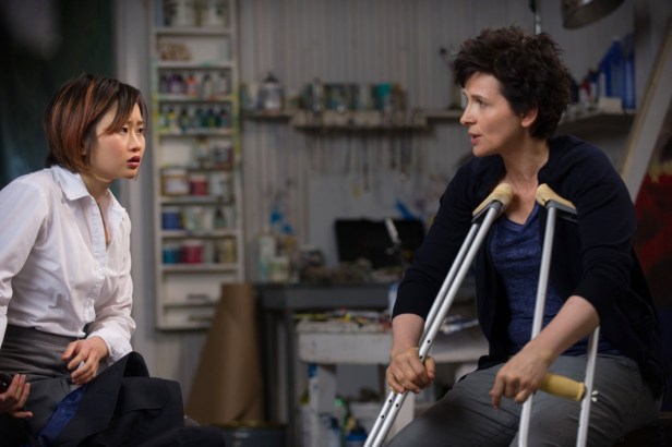 The setting and plot do perhaps suggest Schepisi’s fellow Australian Peter Weir’s Dead Poet’s Society and in a different way, The Mona Lisa Smile with Julia Roberts. But those films combined the question of what happens to ‘maverick’ teachers with the story of the impact of their teachings on their students’ lives. Words and Pictures is really only interested in the students as devices to develop the storyline about the potential romance between Owen and Binoche. I don’t think that it is a conventional romcom, however. It is certainly witty and there are moments when it seems about to get serious about the afflictions suffered by the two teachers, both of whom struggle to get back to their best artistic endeavours. But in the end, Jack’s alcoholism seems rather too easy to overcome and Dina’s arthritis is similarly suddenly controllable by medication. A conventional ending beckons and this is indeed mainstream entertainment. The pleasure is in the central pairing. I think Clive Owen is a very under-rated actor and here he is presented as dishevelled, bleary-eyed and far from a romantic lead, but he makes the character work. Juliette Binoche produced her own artworks for the film and the scenes of her composing her large paintings despite her disability are very well done. The two leads work well together.