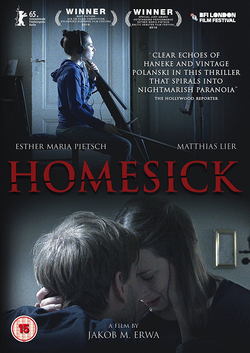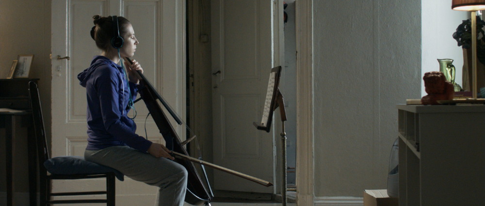 This German-language ‘psychological thriller’ draws on the familiar world of Polanski films such as Rosemary’s Baby (1968), The Tenant (1976) and Repulsion (1963). It opens with a short sequence which teases us with a possible ending. I won’t reveal its content. We then flashback to the moment when Jessica, an ambitious young cello player, moves into a spacious unfurnished apartment in an old traditional Berlin apartment building with her boyfriend Lorenz. After an impromptu celebration with friends who helped them move in with some furniture, Jessica and Lorenz have a private party which proves too loud for their new neighbour upstairs, Hilde. Almost immediately, we know that Hilde is a disturbing figure and we wonder if life for Jessica will mirror that of Rosemary in Polanski’s thriller. Jessica is home most of the time, practising on her electric cello which she monitors through headphones. Hilde, we see, can look down into Jessica’s apartment which doesn’t have curtains or blinds.