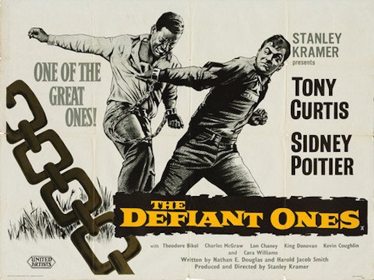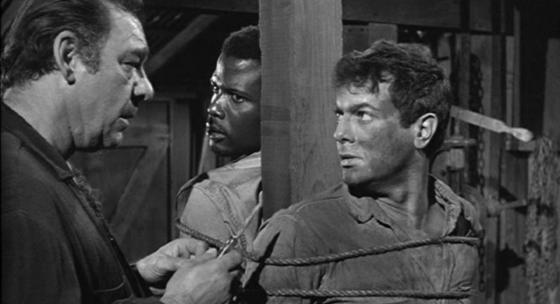 Alan Hunter’s introduction mainly told us what is common knowledge on Wikipedia. Kramer had wanted to use Poitier for some time and he was undoubtedly a leading actor by 1958. Though none of the films he had made were particularly big box office, many were well-received. However, he was also a suave figure and perhaps strange casting as a jailbird. The same might be said about the other potential African-American film actors of the time, e.g. Harry Belafonte or Brock Peters. Kramer wanted a star, even if an unknown might have been more intriguing. This is not to criticise Poitier who is very good, but simply to underline Kramer’s approach. Curtis was a replacement for Bob Mitchum who turned it down and Marlon Brando who was not available. I think Curtis matches Poitier despite again being an unusual choice. He too, was ‘hot’ property at the time and it was good to see both names ‘above the title’.