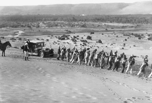 The sponsorship by German firms was an important aspect of the production. In her opening comments Stinnes stresses the German composition of the team, then noting that the cameraman is Swedish. She adds, in a comment that is mirrored by others later in the film, that Scandinavian are Germanic ‘fellows’. The filming does tend to stress the backwardness and poverty of the lands through which much of the journey travels. In fact, even discounting the boats, the round-the-world journey is only partly driven. There are frequent sequences where local people are persuaded or paid for hauling the vehicles, often through mud, sand or rocky terrain. The most gruelling, for the labourers, is when they cross the mountains and deserts of Peru. So her comment that ‘the automobile makes the big world small’ is as much rhetoric as actuality. The film is interesting but conventional: Stinnes is not Riefenstahl. However, she clearly is an independent and adventurous woman.