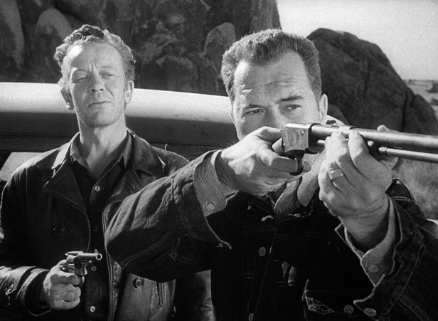 As the killer, Lupino and Young cast William Talman (who later became well-known as the DA always defeated in court by Perry Mason on TV). Edmond O’Brien and Frank Lovejoy were cast as the two hostages. O’Brien was an excellent character actor who appeared again for Lupino in The Bigamist later in 1953. Lovejoy is best known to me as the police officer in Nick Ray’s In a Lonely Place (1950). Lupino had a leading acting role in On Dangerous Ground (1950) for Nick Ray and claims have been made that she directed some scenes of that film when Ray was unwell. I imagine Lupino was very well-known in Hollywood and must have had a large network of people she had worked with and could rely on. She was an independent, but needed a studio like RKO to distribute her films so she still had to compromise on certain issues.