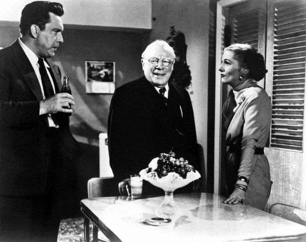 Harry (Edmond O’Brien), Mr Jordan (Edmund Gwenn) and Eve (Joan Fontaine) discuss the possibility of adoption.