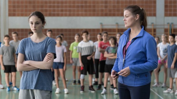 For some, this kind of framing (not forgetting publicity material portraying Maria as Christ on the cross) make her too simply a victim to be truly interesting. And arguably Brüggemann’s film is less subversive than either Sean Durkin’s Martha Marcy May Marlene (2012) or Bruno Dumont’s Hadewijch (2009). Both provide a more obvious sociological/political insight into the attraction that ‘exotic’ fundamentalist ways of life might have for rebellious young women alienated by the shallow materialism and dysfunctional family structures of the west. However I believe the aesthetic Brüggemann outlines in an interview with Indie Outlook is political in the best sense: his distancing of Maria and choice of wide shots in particular “liberate the spectator’s gaze . . . to observe the whole system” and find for themselves truths about ideology and power. We see an intriguing example of this in Station 7, where Maria is confronted with the demands of the world, having to dance to ‘satanic’ music during a mixed-sex gym class. In Stations 1 and 2, Brüggemann opts for planimetric shots (see Catherine Wheatley’s 2016 paper) to depict the rigid order of church confirmation class and family life. In ironic contrast, in the gym scene a line of classmates in the background of the shot rebel against their well-meaning teacher’s efforts to integrate Maria into the lesson by running in all directions. They then mock and insult her, leaving her isolated. Their comments reveal as much disdain for her indigenous brand of religious conservatism as for the head-scarfed Muslim girls who are exempted from PE. Brüggemann seems to suggest both are seen as alien and his visually disruptive shot perhaps represents the wider cultural conflicts of contemporary secular Germany.