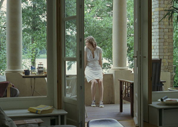 When I started watching the film I was unaware that its premise is taken from Chekhov’s play The Seagull. Perhaps that’s a good thing. I’m not a theatregoer and I don’t really know Chekhov. My thoughts instead turned to similar films in this setting. I thought of Thomas Arslan’s Vacation (Ferien, Germany 2007), on the reasonable basis that Arslan is another member of the ‘Berlin School’. I was also reminded of The Farewell (Abschied – Brechts letzter Sommer, Germany 2000). The point here is that the situation – a group of people meeting at a ‘summer place’ where their different relationships are explored – is potentially a familiar dramatic and even generic narrative proposition. Yet Angela Schanelec challenges our assumptions about how any drama might develop. She does this in several ways.The use of long shots and of close-ups by DoP Reinhold Vorschneider can sometimes mean that we are not quite sure who we are watching or where we are. But what is even more disruptive is her use of dialogue. We are used to mainstream cinema’s use of dialogue to provide ‘narrative data’ and to move forward the events of the narrative. Schalenec’s dialogue comes as a shock – it is so close to the ‘real’ conversations that we have with people we know (well at least I do!). There are seemingly inconsequential remarks that actually convey emotional relationships such as when Irene tells her son who is ironing shirts to dampen the collar. Often too, dialogue is with a character who is offscreen for long periods – sometimes wth responses coming from offscreen.