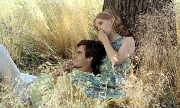 Agnès Varda has just had her 90th birthday and a season of her films is touring UK cinemas. If you’ve never seen an Agnès Varda film, you should seek out your nearest screening forthwith. Varda is a cinematic genius and Le bonheur is marvellous. On the DVD I watched, Varda introduces her film as part of a tribute to her by the TV arts channel ‘arte’. She chooses a vacant lot in her neighbourhood and, because arte is bilingual, she invites a young German boy to translate for her. The wasteland is decorated with posters for her films and she carefully positions herself for the camera so that the backdrop changes to the leaves of a group of saplings waving in the sunshine. She explains that she loves nature and she especially likes picnics, so in Le bonheur there are three. This intro is reminiscent of her autobiographical film The Beaches of Agnès (France 2008) in which she creates a beach on the street where she lives in Paris.