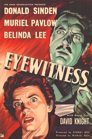 Eyewitness is an example of the most prolific type of 1950s British film, the modestly-budgeted crime film. However, it has several interesting elements which aren’t all that common, being directed by Muriel Box and scripted by Janet Green. Nick wrote recently about another Muriel Box film, Street Corner (1953). He noted that the credits of the print he watched seemed to suggest the film was directed by the producer, William MacQuitty. Nick suggested that this might be for American audiences who might be put off by a female director. I find this odd since the several Muriel Box films I’ve seen tend to describe her as an Oscar winner (for the script of The Seventh Veil, UK 1947 – shared with her husband Sydney). Muriel Box, like her sister-in-law, producer Betty Box, was a stalwart of 50s British cinema and was contracted to Rank from 1956-9.