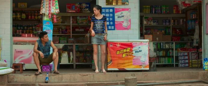 In the Press Notes (which I struggled to translate from the French) Song Chuan explains that he shot the film in his own home village. He suggests that it is now quite difficult to see traces of the village culture he grew up with in the 1980s and 1990s. Instead, he suggests, village life in the new high-growth economy means that money is everything and social behaviour is more direct – people do not express their true emotions but treat all exchanges as if they were economic transactions. Ciao Ciao’s mother sells corn liquor to supplement her income, buying it wholesale from an illicit distiller. Cia Ciao falls in with the distiller’s son Li Wei (Zhang Yu). He has also returned from time away from the village and spends his time whoring, drinking and gambling. All three activities involve illegal activity but corruption abounds in the village at all levels. A third character (played by Zhou Quan), a young man who runs a shop and claims to have been a hairdresser in Guangzhou, offers Ciao Ciao a different option. I won’t spoil the plot of what develops as an ultimately dark crime melodrama. It’s in some ways quite conventional in terms of narrative events but it’s presented in interesting ways and Song Chuan’s analysis of ‘the Chinese condition’ is clearly set out. This might be one reason why the film has not been released in China as far as I can see. Another might be the sex scenes which are carefully shot to be explicit without showing genitalia meaning that the film has a ’15’ Certificate in the UK. What is clear from these scenes is the offhand and misogynistic way Li Wei behaves towards Ciao Ciao.