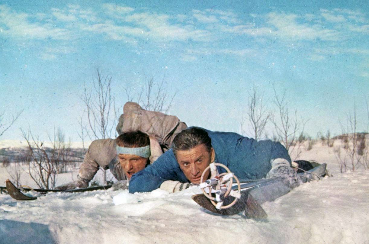 The Heroes of Telemark is one of several bigger budget Second World War films produced in the mid-1960s (following on from the major success of The Guns of Navarone (1961)) and IMDb suggests that in some territories it was blown up from its 35mm ‘Scope (Panavision) print to a 1:2.20 presentation in 70mm (but only Mono sound). It is sometimes described as an ‘epic’ and the Hollywood director Anthony Mann had previously directed El Cid (1961) and The Fall of the Roman Empire (1964). The main puzzle about the film is the production company ‘Benton Film Productions’. I can’t find anything about this company which only seems to be mentioned in relation to this film. Did Rank stump up all the money? Did much of it come from Hollywood? The film was made on location in Norway and at Pinewood. Rank distributed it in major European territories and Columbia in North America. With a budget of $US5.6 million the production needed international stars so Harris was joined by Kirk Douglas as a Norwegian University Professor who is persuaded by Harris to join the group. The professor then turns out to be an ‘action hero’ and gradually takes over the lead position. The rest of the cast mainly comprises well-known British character actors with the exception of Michael Redgrave and the Swedish star Ulla Jacobsson. The film was shot by Robert Krasker with music by Malcolm Arnold, so it’s a quality production.