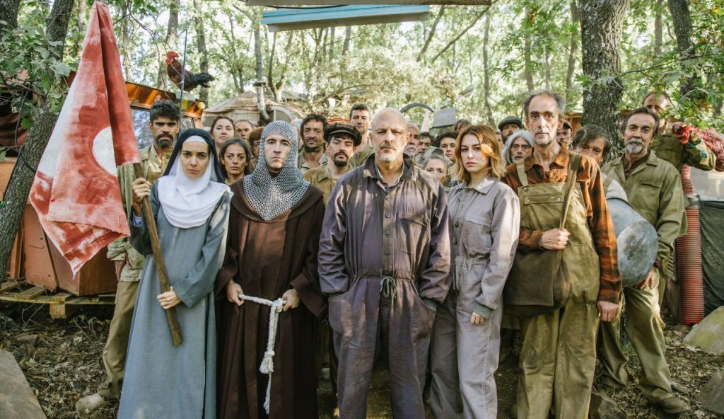 I’ve noted from several film festival experiences that the ‘Opening Night film’ is often prestigious but not always very good. Tiempo después was the opening film of ¡Viva! 25. It had the largest audience of the three films I saw on Saturday, but I rated it the least interesting/enjoyable of the three. That doesn’t mean that it is a ‘bad film’ and it may well be my failure as an audience rather than an issue with the film itself. I note that the writer-director José Luis Cuerda was the director of La Lengua de las mariposas (Spain 1999) which Nick raved about on this blog. I also note that the array of excellent actors on screen in this recent film includes several who have worked with Pedro Almodóvar, including one, Carlos Areces, who was one of the camp air stewards on I’m So Excited (Spain 2013) – the most poorly-received of Almodóvar’s films in the UK. This may be significant. Is this an issue about Spanish comedy? Perhaps it is – but I really liked I’m So Excited and La Lengua de las mariposas. I think the problem here might be defined as ‘political satire’, which is very hard to pull off, especially for international audiences. (Cuerda also produced the first three films by Alejandro Amenábar, Tesis (1996), Abre los ojos (1997) and The Others (2001) – which is another reason to make him an important figure.) His last film as director before this one was the well-received The Blind Sunflowers (Los girasoles ciegos) in 2008. The new film has been widely seen as a form of development/updating of Cuerda’s comedy Amanece, que no es poco (1989) with his comedy style described as ‘surrealist rural comedy’.