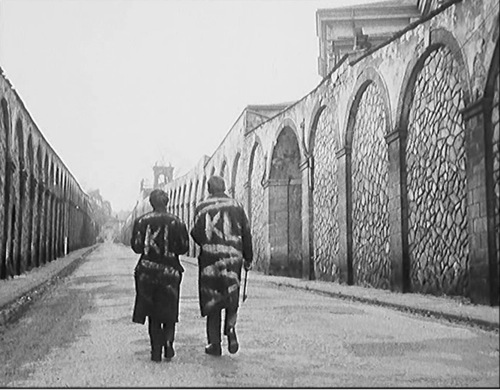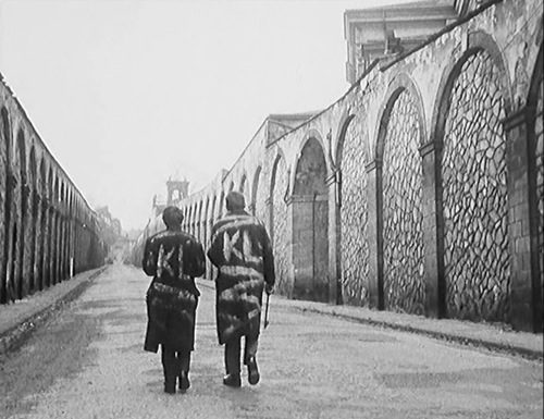You could read the boys’ (or is it just one of them?) dreamlike state as being a result of exhaustion. In one scene they spit out bread even though they are starving because it makes their dry mouths bleed. In another a farmer’s wife may be assaulted, sexually or otherwise, as different possibilities are shown. The stark black and white cinematography, sometimes over-exposed, adds a gritty feel to the dreamlike imagery. In one scene, the boys’ seem to spend an age clambering up a scree slope; in another, one of them seems to be chatting up a girl. As to their fate, I can’t spoil it because I don’t know.