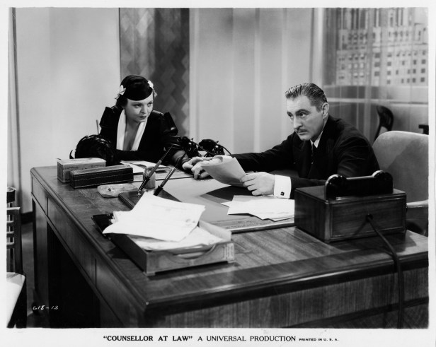 The afternoon offered a John Barrymore film, Counsellor at Law (1933), finely directed in an adaptation from Elmer Rice’s play by William Wyler. The print was from the UCLA Film and Television Archives in very good condition. The early sound track apparently needed adjustment from time to time by the projectionists. Barrymore is excellent as a shyster Lawyer George Simon, originally from the Jewish Lower East Side of Manhattan. The film [and play] follow his Machiavellian manoeuvres when a past case returns to haunt him. The pace and the dialogue are crisp and sharp; Isabel Jewell as telephonist Bessie is a delight. And there is one memorable scene when Simon agrees to defend the son of an old Jewish neighbour, Harry Becker (Vincent Sherman). Harry is a communist and in a terrific sequence turns on Simon who he denounces as a class traitor. Even though this is pre-code Harry later dies from injuries sustained from the New York police.