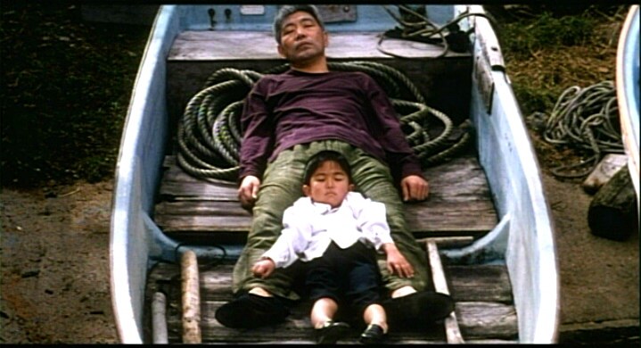 Since he began making fiction films, Kore-eda has been subject to various suggestions by Western critics and scholars about his influences and particularly the possibility that he has been strongly influenced by Ozu Yasujiro. Kore-eda has responded by agreeing that he has studied Ozu but that he still isn’t sure what he makes of the films. Naruse Mikio has been the one of the 1950s ‘masters’ who Kore-eda himself has acknowledged. Kore-eda has also stated quite clearly that Hou Hsiao-hsien (an Ozu fan) and Ken Loach (as a filmmaker concerned with ‘social issues’) are two of his main influences. The social issue in Maborisi is the long-term impact of bereavement on the widow and her son. Yumiko cannot get past her memories of her grandmother and of Ikuo and this prevents her from helping Yuichi in his attempts to feel part of his new family. Fortunately he now has a step-sister a few years older and his new father seems a patient and loving man. He also has a new grandfather. The next door neighbour, a fisherman, is helpful too and in the village there is Tomeno, an older woman who still goes out to sea to catch crabs for her market stall. She is an important figure for Yumiko’s new family, but does she remind Yumiko of her grandmother? She is perhaps the first of the older women who populate some of Kore-eda’s later films.
