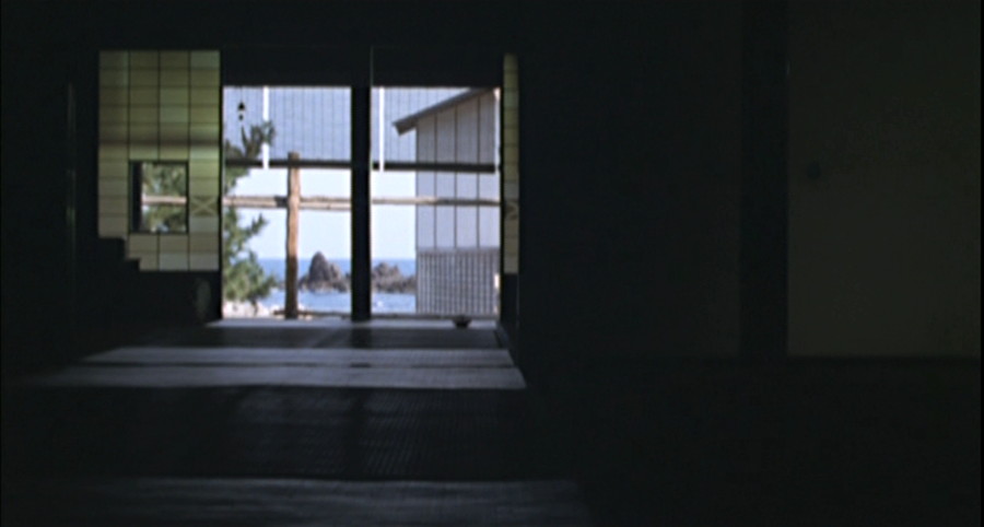 I will avoid too many spoilers from this point on. I want to comment mainly on the visual style of this first fiction feature (after the director’s work in television documentary) and also on the ways in which it presents ideas to which Kore-eda may return in later films. Unsurprisingly perhaps, there is more of a sense of the documentarist’s ‘observing’ eye in Maborosi, both in the street scenes, but also in the use of long shots and long takes. Towards the end of the film the long shots are expanded even further so we get to see a small ‘action’ within a long shot of the entire coastal village (from the heights above the settlement). Against these expansive shots, Kore-eda offers us interiors which all seem underlit and in which events often seem to play out very slowly indeed.