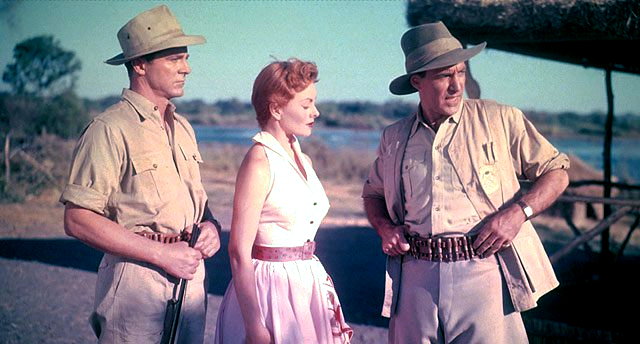 The Wikipedia entry on the film notes that the film was popular in the UK, earning the then healthy box office total of over £200,000. With North American and international distribution via Warner Brothers (investors in ABPC) the film must have made substantial profits. Such films constitute an important cycle in the 1950s – and they have continued to do so, in different forms, up until the present – even if the political context has changed. George Marshall (who made 89 features in total) made at least one more similar film, Beyond Mombasa (1956) which was also a UK-US production, but this time with Columbia and starring Cornel Wilde and Donna Reed. The important link between the two productions seems to have been producer Tony Owen (Donna Reed’s husband). My other interest in Duel in the Jungle (i.e. after its colonial adventure categorisation) is in David Farrar, who continues to fascinate me, though I’m not quite sure why. He is in danger in this film of falling back on his ‘villainous squire’ role from Powell and Pressburger’s Gone to Earth (1950). Duel in the Jungle was his second American production but he’d already played in the 1949 Gainsborough picture Diamond City set in South Africa. One of his final films was Watusi (1959), a follow up to King Solomon’s Mines. I doubt if he visited South Africa for any of these films but in 1962 he just walked away from films and settled in South Africa where he lived for the next 30 plus years until his death in 1995.