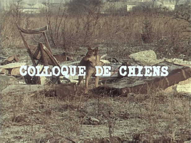Dog’s Dialogue / Colloque de chiens (France 1977) was a 22 minute ‘photo-roman’ by Raúl Ruiz, screened from a colour 35mm print. The English sub-titles were projected digitally. A ‘photo-roman’ uses a series of still shots to offer some sort of narrative. This one was unconventional as it included moving images, both of the titular dogs and, later, of a location. The various dogs, mainly tied up and barking, were some sort of metaphor. The humans in the story proper went through a cycle of events that