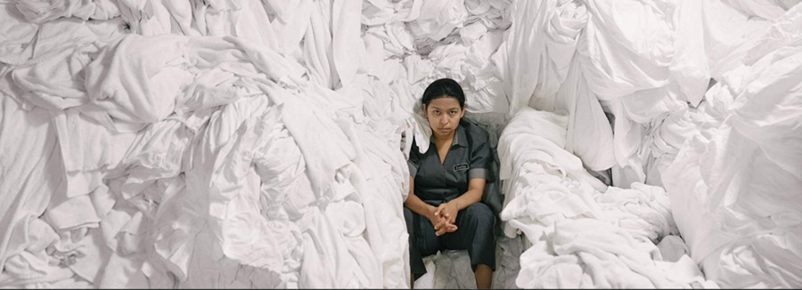 As the title suggests, the film focuses on Evella (‘Eve’), a chambermaid in a 5 star hotel in Mexico City. Eve is a 24 year-old Indigenous woman who has clearly made good progress in her time at the hotel. She is now responsible for the 21st floor and has her sights set on the 42nd floor, the penthouse suite. Later we will learn that she has a small boy being looked after by a child-minder and that a further promotion will help her pay for this child care and to find more suitable accommodation in the city. The narrative doesn’t actually move out of the hotel until the final scene and all we know about Eve’s life outside work is gleaned from the phone calls she manages to make to the child-minder.
