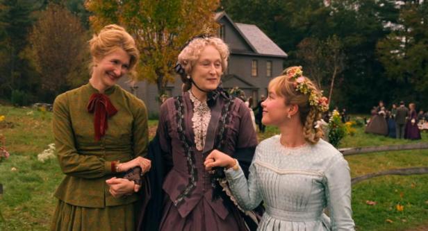 The major innovation in Greta Gerwig’s adaptation is the restructuring of the narrative, so that flashbacks reveal to us how the March daughters were, back in 1861, and how they are ‘now’ in 1867. Cuts are often made ‘seamlessly’ on similar movements by the same character. This has been much heralded by critics but I found it disconcerting at first. I like to think I am a reasonably skilled reader, but I had to ‘work’ to follow the narrative and reassemble the plot as we went along. Eventually I found myself in tune with the flashbacks but I wonder how many audiences were either confused or just allowed the overall narrative flow to take them along? Perhaps most audiences, especially in North America, know the story so well that they could follow events with no problem at all? The major innovation in the film appears to be to ‘play’ with the scenes detailing how the sisters are influenced or not in terms of the need to marry ‘well’ – i.e. to rich men. I haven’t read the novel but Gerwig’s script seems to shift the discourse around the marriage ‘deal’ to make it a more complex issue about the possibility for women to control their own creativity – and to get properly recompensed for their output. Jo achieves this by writing about herself and her family and getting the full royalties. Amy marries into money but only once she has worked out the economics of life as a female fine artist.
