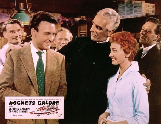 The ‘rockets’ of the title are new secret RAF guided missiles called ThunderBuzzards designed by a German scientist Dr Hamburger. Actually they are Bloodhound missiles introduced by the RAF in 1958 (see them on YouTube). The Air Ministry has chosen Todday as a suitable site to establish a testing station and Squadron Leader Hugh Mander (Donald Sinden) is sent to the island (incognito) to check it out, especially as it is likely that some islanders will need to be re-housed on the mainland and the strength of local feeling will need to be tested. When he arrives on the boat it is with Janet, the local schoolteacher and daughter of the island’s post office/general store. This is was the first surprise for me since Janet is played by Jeannie Carson, a Yorkshire lass who in 1958 had her own US TV sitcom (playing a Scots young woman) which ran for 32 episodes and in 1958 she also appeared in a US TV film of Little Women playing Jo March. I seem to remember that the TV series was a favourite programme in our house so perhaps we went to see the film on release. Jeannie could certainly sing and the film includes a song in Gaelic she is teaching to the children.