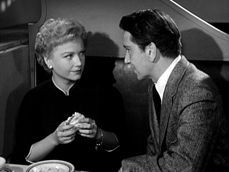 The two male leads are also interesting. Raymond Burr was very active at this time. He was an equally suspicious character in Rear Window (1954) for Hitchcock. Here he seems an enormously powerful physical figure, dwarfing the women he encounters. Richard Conte seems the only one of the cast who might be mis-cast. McGilligan describes him as a ‘hero-without-warts’ which is a little unkind, but I don’t see him as a reporter or a columnist. He seems too smooth and I think if it had been Dana Andrews, the journalist from Beyond a Reasonable Doubt, the role might have worked better. Conte is ‘Casey Mayo’, a star reporter/columnist whose clout on the paper can enable him to mount his own campaign to find a wanted person before the police. He is so prestigious that he is invited to witness an H-bomb test and must therefore ‘solve’ the mystery and get into print before he boards a plane to see the test. This reference alongside the war in Korea and a reference to TV shows are all markers of a clever script that strives to be contemporary but Conte’s character with his ‘little black book’ seems full of contradictions. He’s man in his forties who acts like someone much younger and I felt that his actions in the final third of the narrative don’t serve the intriguing situation that had been set up earlier.