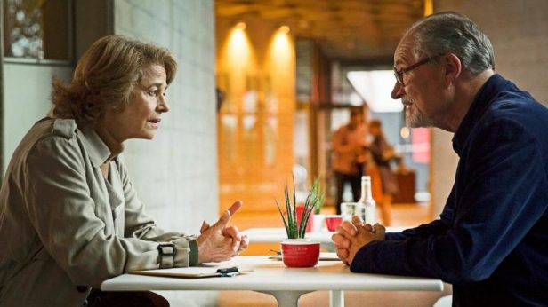 The narrative is relatively straightforward but because of the ‘epistolary’ element and the development of a mystery, eventually quite complex. Tony Webster (Jim Broadbent) is the ‘curmudgeon’, a man in his late 60s, divorced and semi-retired – we see just the one mildly irritating customer in his shop where he sells vintage cameras (Leicas in the main). One day he receives a letter informing him that he has been left something in the will of a woman who was the mother of Veronica, a girl he met at university nearly 50 years ago. Intrigued, he attempts to find out what it is all about. A sub-plot, seemingly there to explore his curmudgeonly nature in a different context, concerns his heavily pregnant daughter Susie, a single woman having a child who needs the support of her parents. She’s played by Michelle Dockery and Harriet Walter plays Tony’s ex-wife Margaret with whom he still has a fairly amicable relationship. Eventually we learn that the ‘bequest’ is a diary which Veronica (Charlotte Rampling) refuses to produce. What follows traces the events of the early period alongside Tony’s ‘investigation’ and eventual meeting with Veronica as she is now.