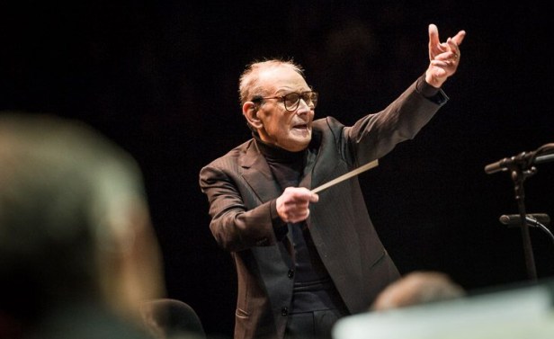 Check out the opening credit sequence of The Hateful Eight and Morricone conducting the recording of the score for the opening sequence in the film.