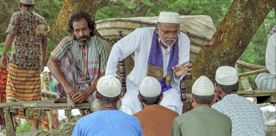 Rudro’s landlord, Bashar (Ashok Bepari) has a young son and an older daughter Tunni who are quick to discover what is in Rudro’s crate and soon the boys in the village are taking part in art projects, especially trying their hand at modelling figures. This will prove problematic. The small community is in thrall to ‘the Chairman’, a seasoned fisherman who has travelled and installed himself as both local head man and imam. He helps to spread the idea that Rudro’s figures are ‘idols’ and that because of this, the community may be punished and the fish may not be found. The ‘contest’ between Rudro and the Chairman (Fazlur Rahman Babu) becomes the main driver of the narrative.
