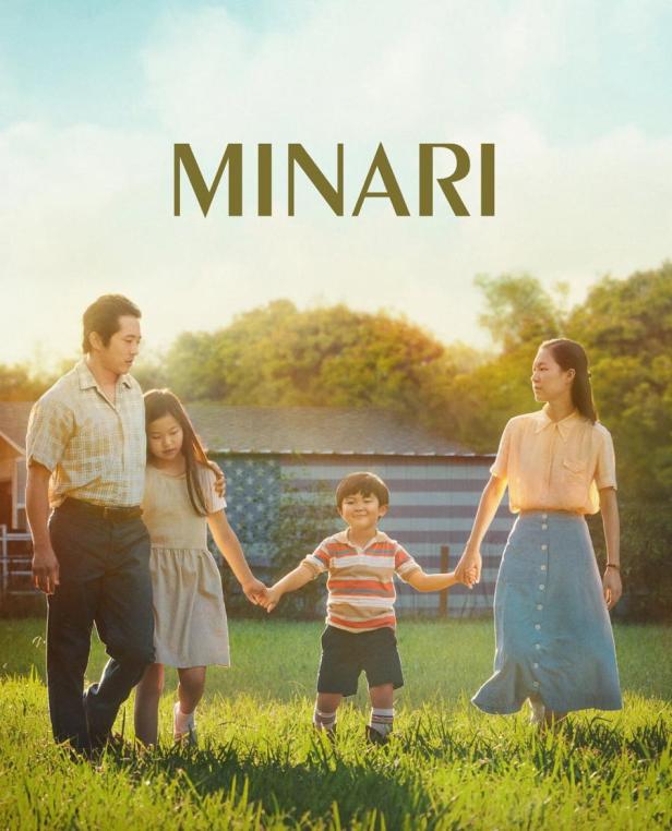 The title ‘Minari’ refers to a South-East Asian vegetable, similar in some ways to watercress in the UK – it thrives by running water. Grandma smuggles in seeds to the US and plants them on the farm by a stream and they thrive. The film ends with these minari plants which creates a set of meanings I won’t spoil. As I’ve tried to indicate, this is a well-made film which raises for me many interesting issues but possibly didn’t work as the family melodrama I hoped it would be. I’m still glad I saw it and it may become an interesting film to work with in future. Whether it will become a big hit in the UK, I don’t know (and anyway with online releases, how do we tell?). I think my problem is more to do with how the film has been discussed in the US and how it is being treated as an ‘awards film’. I’ve cropped the top and bottom of the poster image above, but the central group composition is left untouched. This presents what I would consider a very good image to use for a semiotic analysis. The family composition seems to be seeking a reference to the films of Kore-eda Hirokazu, specifically Like Father, Like Son (Japan 2013). Ozu is another director referenced by reviewers, especially a film like Ohayu (Japan 1959). I’m surprised that Edward Yang hasn’t also been mentioned because of Yi-Yi (Taiwan 2000). These are all family melodramas with young boys as central characters. Note also the hazy sun connoting that ‘feelgood’ sense. (Or is it meant to be ‘magic hour light’ as used in Days of Heaven (1978) by Terrence Malick, one of the directors Chung namechecks?) The position of the figures in the composition refers to aspects of the conflicts in the film. Husband and wife are separated by the children. He looks down but she looks at him. What is she thinking? The daughter too looks down and the focus is clearly on the smiling David who in effect ‘owns’ the image. I’m not sure if the huge American flag on the building appears in the film. Perhaps I noticed it in the poster because the current right-wing UK government is plastering itself with Union Jacks? It seems here to raise questions of identity and the American dream which always invoke mixed emotions for me.