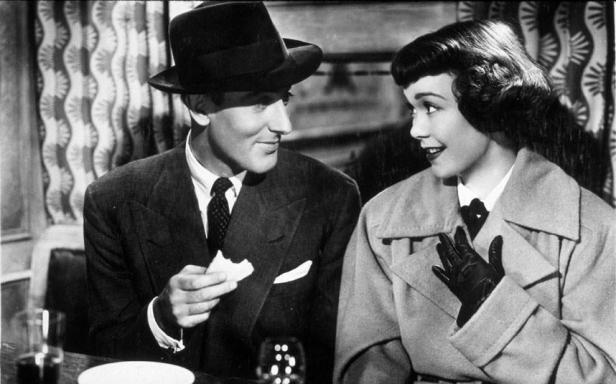 Hitchcock and Dietrich were roughly the same age and they had both experienced the German film industry in the 1920s. By all accounts they ‘got on’ well together and he probably didn’t treat her like he did some of his other female leads. Dietrich had learned a great deal about how to be photographed to look her best from Joseph von Sternberg and his camera crews. Hitchcock amazed his own crew by allowing her to dictate lighting and angles for her set-ups. But from the four leads I would pick out Jane Wyman as the revelation. She was in her early thirties when she made the film but I found her convincing as a younger woman. I was also impressed with her performance in All That Heaven Allows in 1955, in which she plays the ‘middle-aged’ widow who falls for Rock Hudson in Douglas Sirk’s melodrama. I realised that I have seen very few of her films and that apart from marrying Ronald Reagan she didn’t make a great impression in her early Hollywood career, often playing second lead in in routine comedies and musicals. It wasn’t until 1946 when Billy Wilder’s The Lost Weekend was released that she really made a splash. Perhaps it was the early experience of comedy which helped her to get the most out of Stage Fright‘s script?
